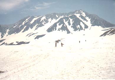 黒部から立山の日本海側に出る。 景色が一変して6月初旬なのに雪がまだまだ沢山残っている。 山スキーに行く人達がいる。